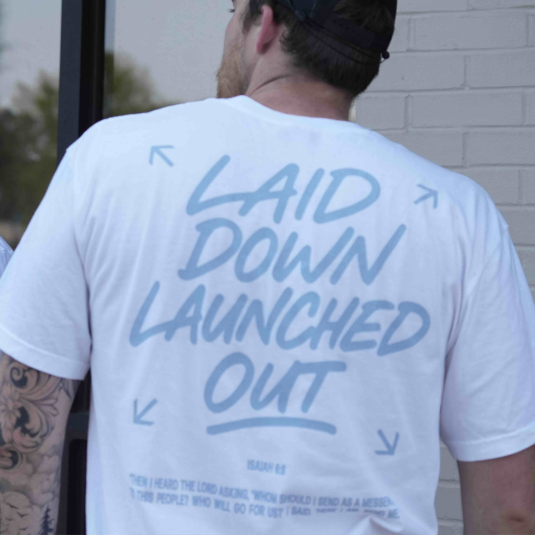 Unleash your potential with the "LAID DOWN, LAUNCHED OUT" T-shirt, a bold and inspiring piece that embodies the essence of Isaiah 6:8. The scripture—“Also I heard the voice of the Lord saying, ‘Whom shall I send, and who will go for us?’ Then I said, ‘Here I am! Send me.’”—reminds us of our mission to serve with passion, faith, and commitment.